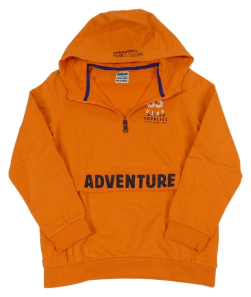 Oranžová mikina s nápisy a kapucí