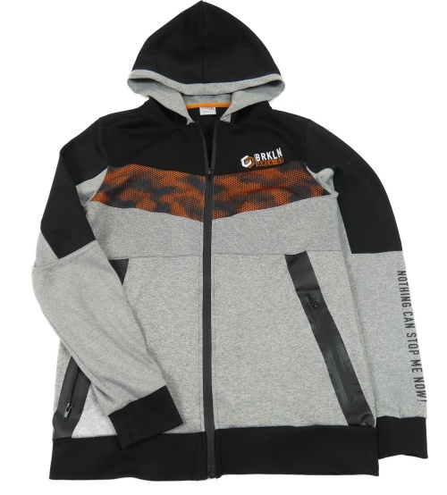 Šedo-černá sportovní propínací mikina s nápisem a kapucí Chapter young