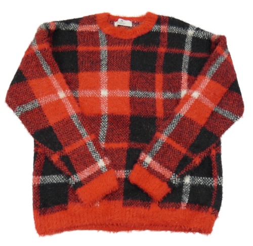 Červeno-černo-bílý kostkovaný chlupatý svetr H&M