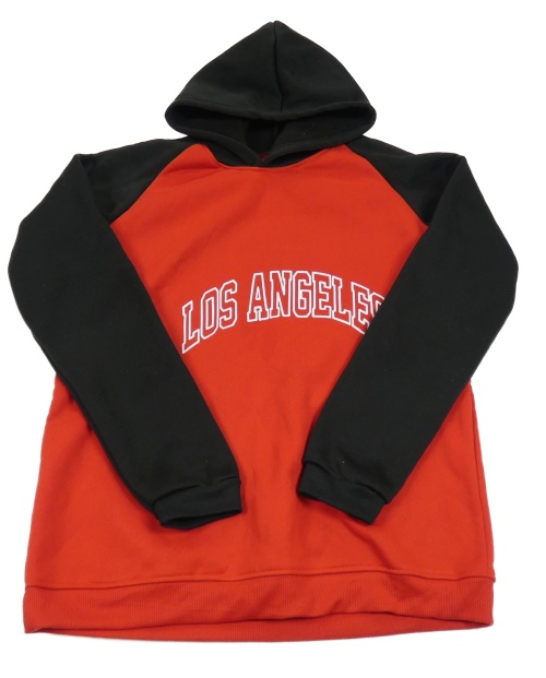 Červeno-černá mikina s nápisem a kapucí