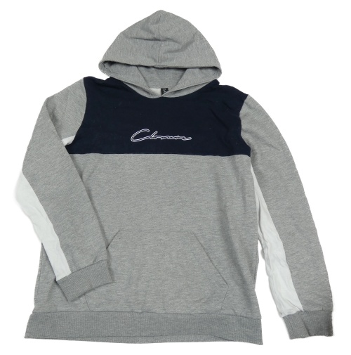 Šedo-tmavomodro-bílá melírovaní mikina s logem a kapsou a kapucí CLOSURE