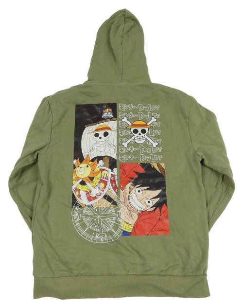 Khaki mikina One Piece s kapucí