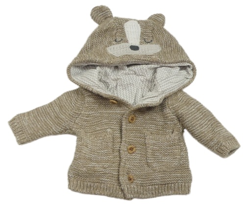Kávový melírovaný propínací podšitý svetr s kapucí s čumáčkem M&S