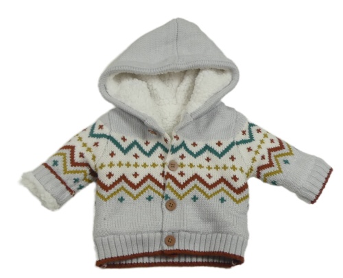 Šedo-barevný vzorovaný propínací zateplený svetr s kapucí Nutmeg