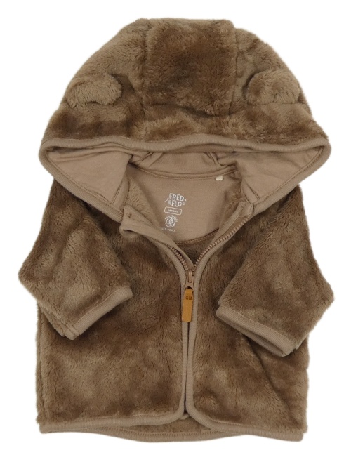 Hnědá chlupatá propínací mikina s kapucí s oušky F&F