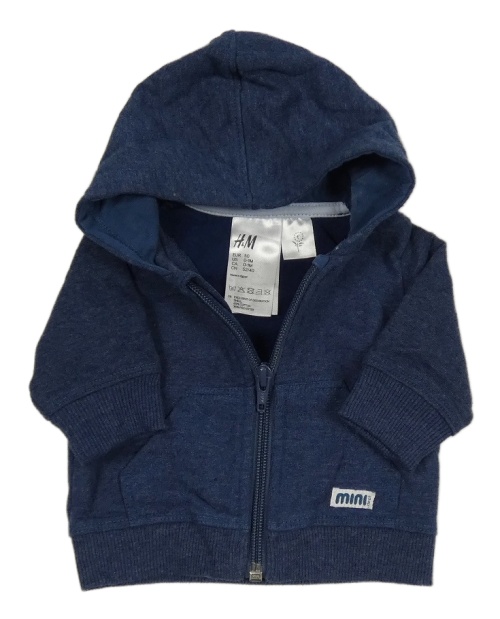 Tmavomodrá melírovaná propínací mikina s nášivkou a kapucí H&M