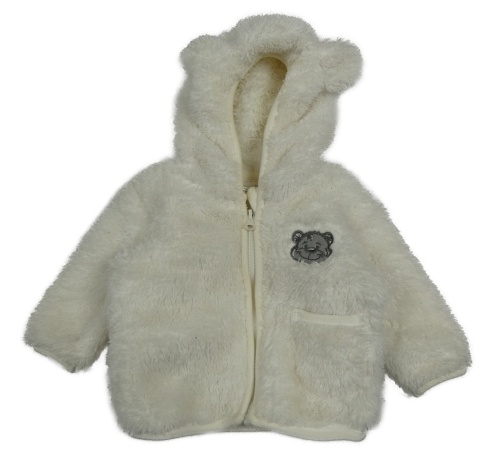 Bílá chlupatá propínací mikina s medvědem a kapucí Ergee