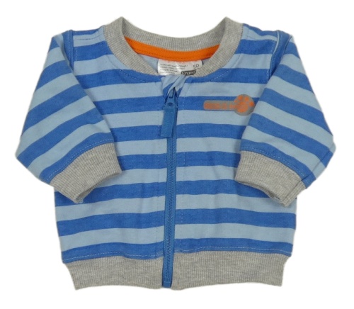 Modro-světlemodro-šedá pruhovaná propínací mikina s nápisem Ergee