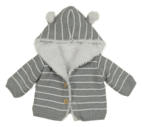 Šedo-bílý pruhovaný propínací zateplený svetr s kapucí Matalan