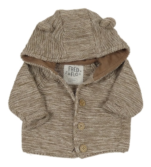 Hnědý melírovaný propínací svetr s kapucí Fred & Flo