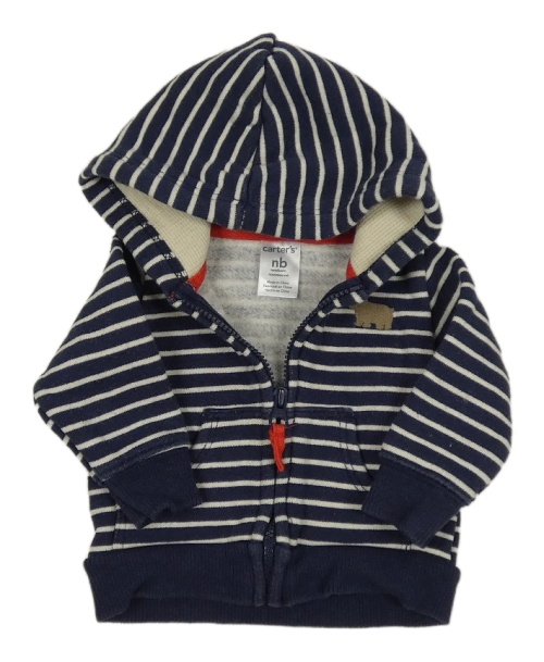 Tmavomodro-bílá pruhovaná propínací mikina s medvídkem a kapucí carter's