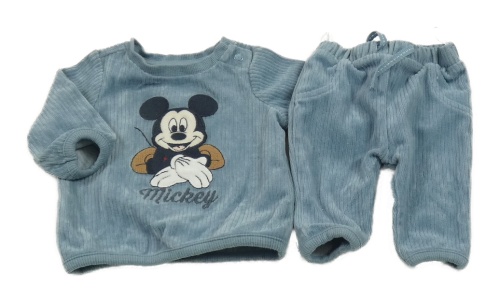2set - Šedomodrá žebrovaná plyšová mikina s Mickeym + tepláky C&A