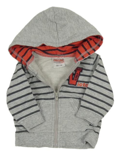 Šedo-antracitová pruhovaná propínací mikina s písmenem a kapucí
