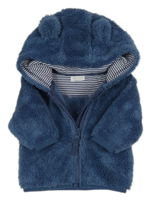 Tmavomodrá chlupatá propínací mikina s kapucí Next