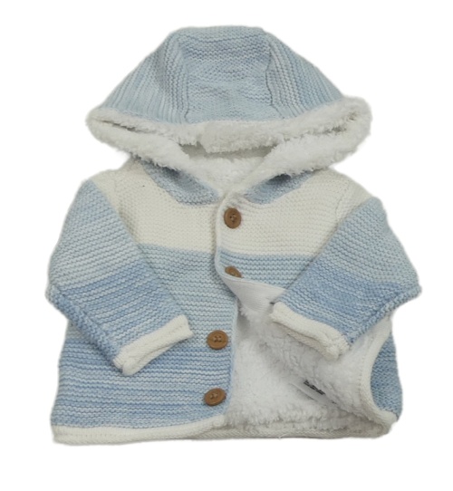 Světlemodro-bílý zateplený propínací svetr s kapucí Mothercare