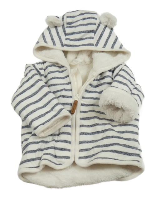 Bílo-tmavomodrá pruhovaná zateplená propínací mikina s kapucí H&M