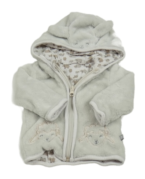 Světlešedá chlupatá propínací podšitá mikina s ovečkami a ,kapucí