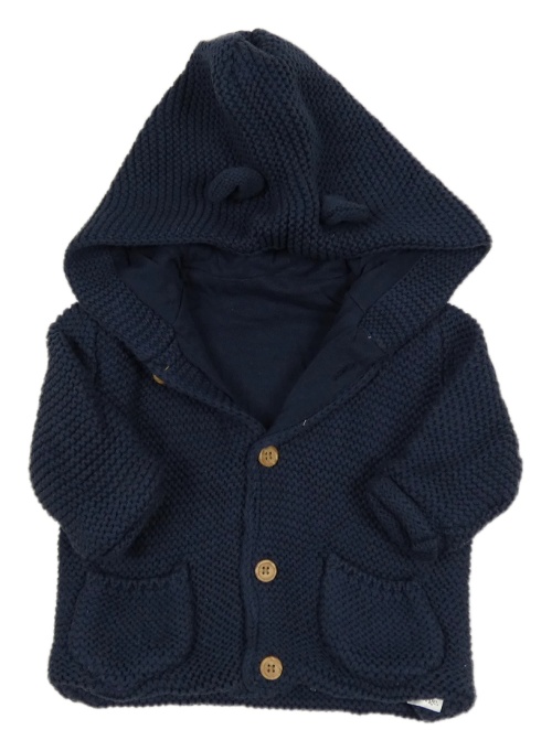 Tmavomodrý podšitý propínací svetr s kapucí s oušky George