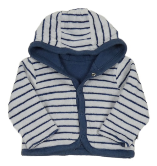 Bílo-tmavomodrá pruhovaná sametová podšitá propínací mikina s kapucí Mothercare