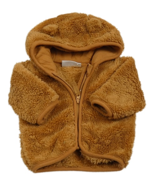 Hnědá chlupatá propínací mikina s kapucí s oušky Ergee