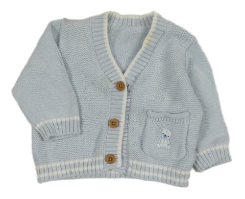 Světlemodrý propínací svetr s kapsou s medvědem Nutmeg