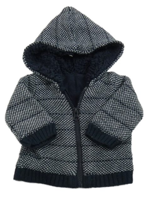 Tmavomodrý vzorovaný zateplený propínací svetr s kapucí Matalan