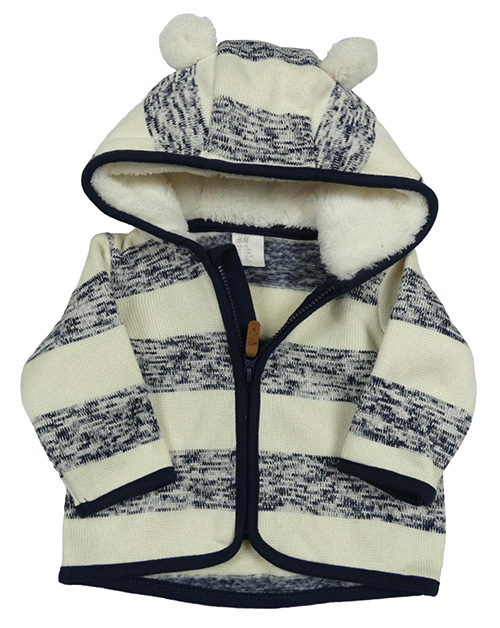 Krémovo-tmavomodrá pruhovaná pletená propínací mikina s kapucí s oušky H&M