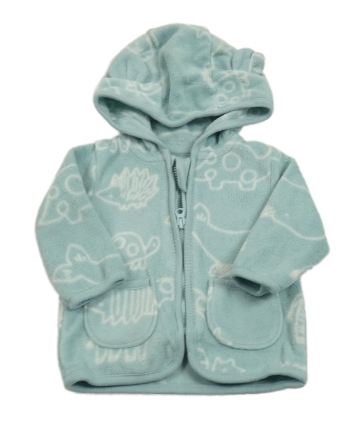 Světlemodrošedá fleecová proínací mikina s dinosaury a kapucí s oušky George
