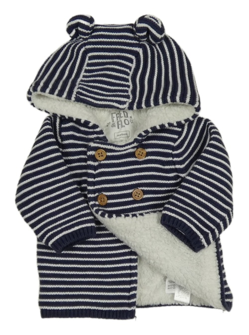 Tmavomodro-bílý pruhovaný propínací zateplený svetr s kapucí F&F