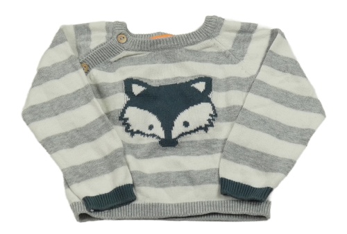 Šedo-bílý pruhovaný svetr s liškou Hema