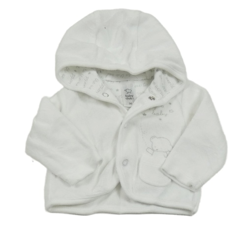 Bílá propínací sametová mikina s medvídkem a kapucí C&A