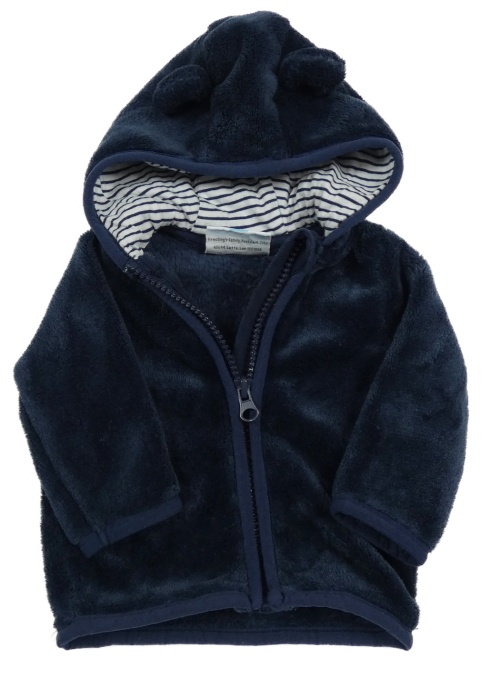 Tmavomodrá chlupatá propínací mikina s kapucí s oušky Topomini