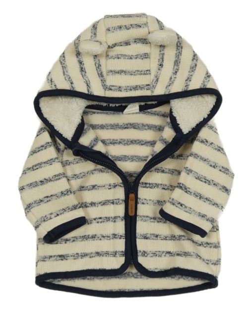 Smetanovo-tmavomodrá pruhovaná melírovaná pletená propínací mikina s kapucí s oušky H&M