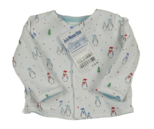 Bílá vzorovaná oboustranná propínací mikina s tučňáky Jojo Maman Bébé