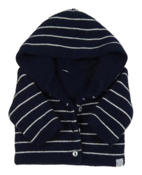 Tmavomodro-bílý pruhovaný propínací svetr s kapucí