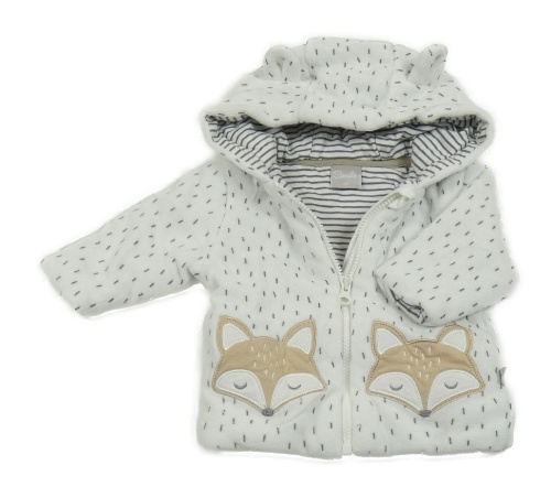 Bílá vzorovaná sametová zateplená proínací mikina s liškami a kapucí smile