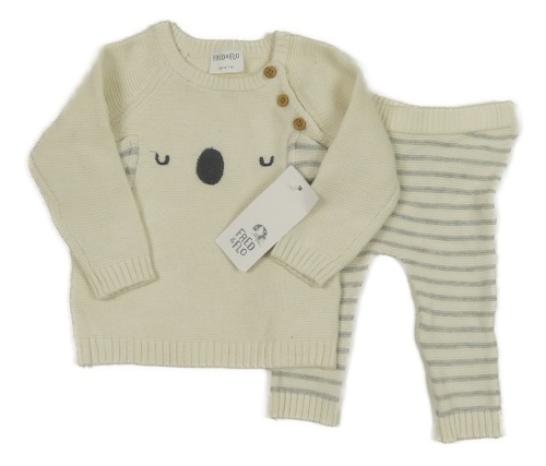 Nové - 2set - Smetanový svetr s čumákem + smetanovo-šedé pruhované pletené tepláky F&F