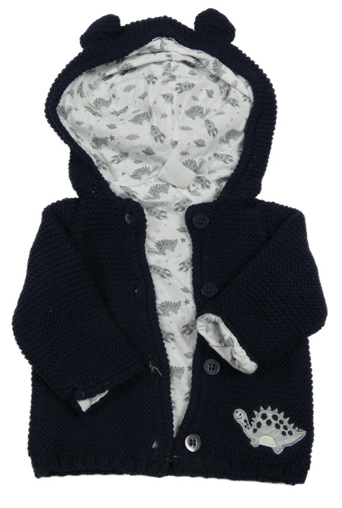 Tmavomodrý propínací podšitý svetr s diinosaurem a kapucí Bubble Gum