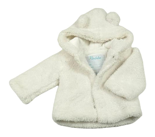 Bílá chlupatá zateplená propínací mikina s kapucí s oušky