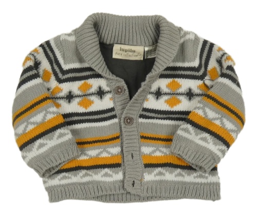 Šedo-bílo-hořčicový vzorovaný propínací podšitý svetr Lupilu