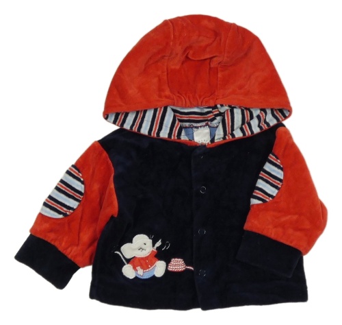Tmavomodro-červená sametová podšitá propínací mikina s myškou a kapucí C&A