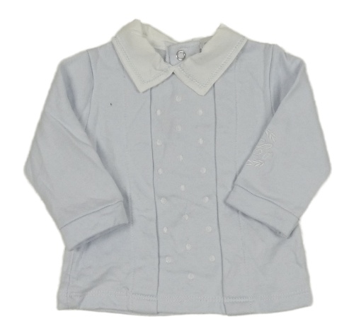 Světlemodro-bílá propínací mikina s puntíky a límečkem