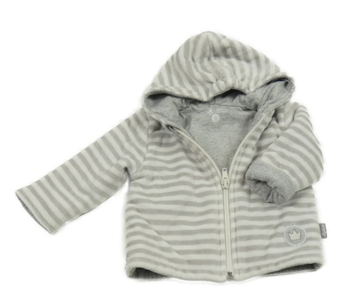 Šedo-bílá pruhovaná sametová propínací zateplená mikina s kapucí