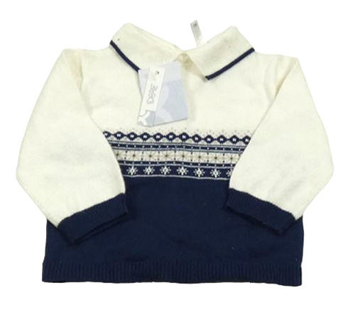 Nové - Bílo-tmavomodrý vlněný svetr se vzorem a límečkem