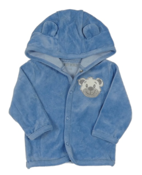 Modrá sametová propínací mikina s medvídkem a kapucí s oušky BABY WORLD