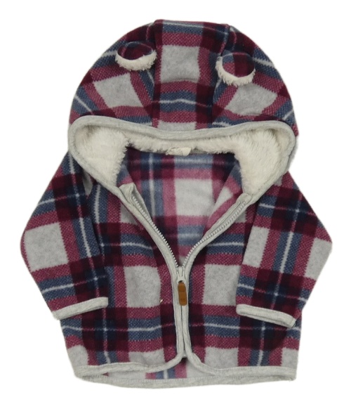 Šedo-vínovo-tmavomodrá kostkovaná fleecová propínací mikina s kapucí H&M