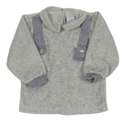 Šedá melírovaná sametová mikina s kapsou a límečkem