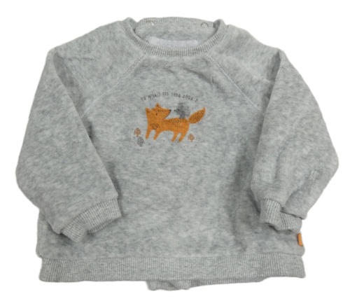 Šedá melírovaná sametová mikina s liškou s ježkem