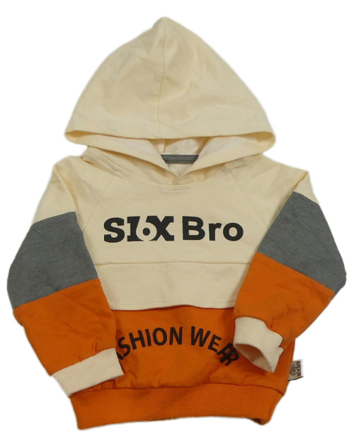 Smetanovo-oranžovo-šedá mikina s nápisem a kapucí