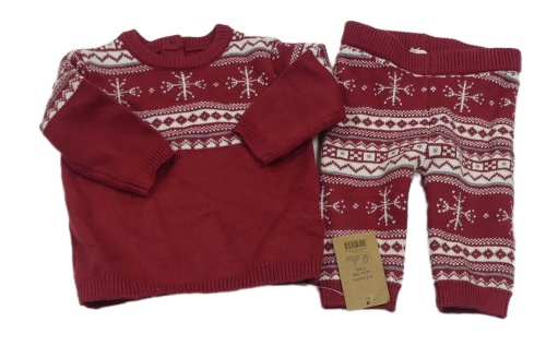 Nové - 2 set - rubínovo-bílý svetr s vločkami + vzorované pletené kalhoty George
